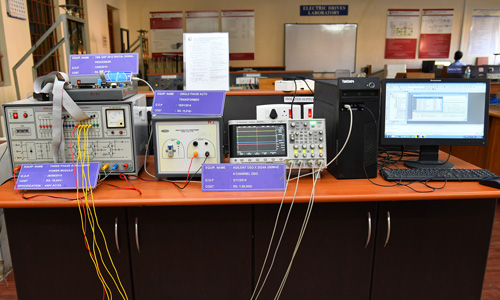 The Department has well equipped laboratories supported with latest hardware utilities like Harmonic Analysers, Multilevel Inverters, SRM Drive, BLDC Drive, DSP, dSPACE 1103, Microcontroller, DSO, etc., and software’s like PSCAD, PSIM, MATLAB, ETAP etc.,