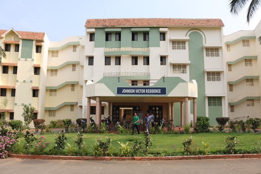 Johnson Victor residence has 200 single seater, 88 four seater and 10 six seater rooms with the capacity to accommodate 612 students. Fourth year students are encouraged to reside in this residence.